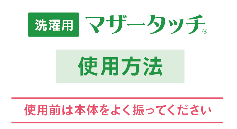 マザータッチを入れた水を3~5分間ぐらい洗濯機を回して、 その後洗濯物を入れて洗濯ください。水が活性され、汚れが落ちやすくなります。